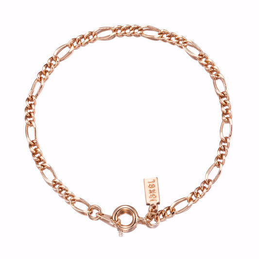 18ct Heavy Rose Gold Plated Figaro Child Bracelet with Spring Ring - USA Made
