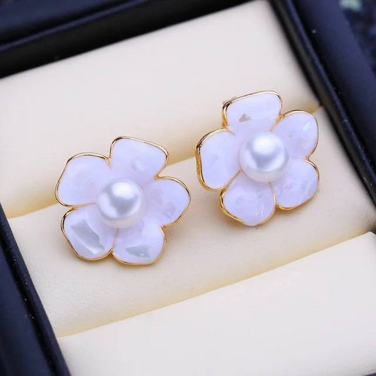 Designer Genuine Freshwater Flower Stud Earrings in Gold