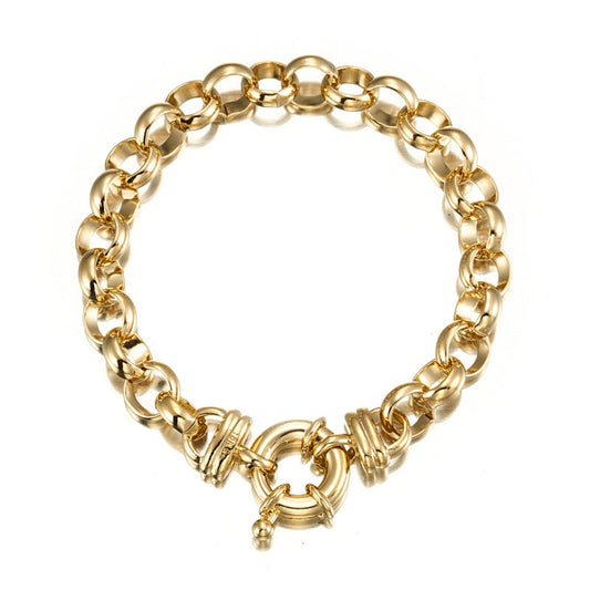 18ct Heavy Yellow Gold Plated 10mm Belcher Chain Bracelet with Bolt Clasp - USA Made