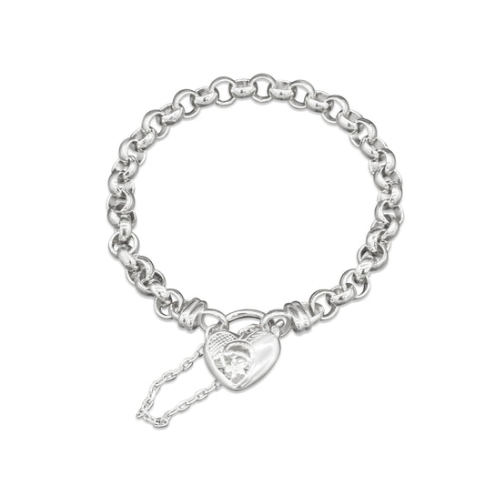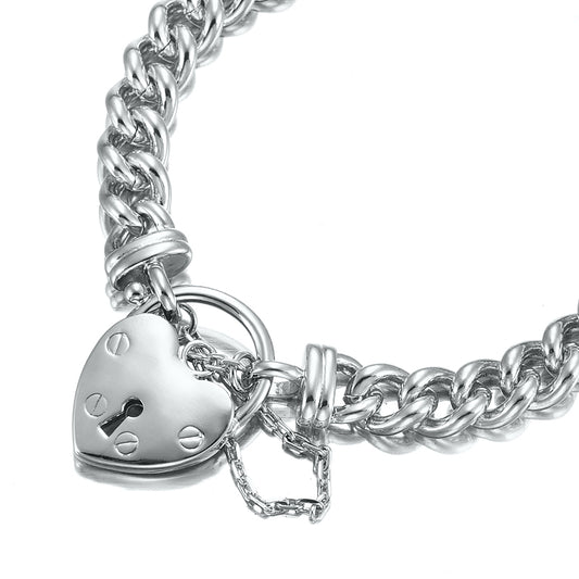 925 Sterling Silver Plated 6mm Belcher Chain Bracelet with a Vegas Heart Locket - USA Made