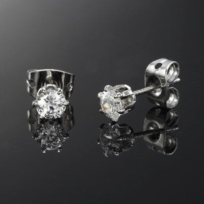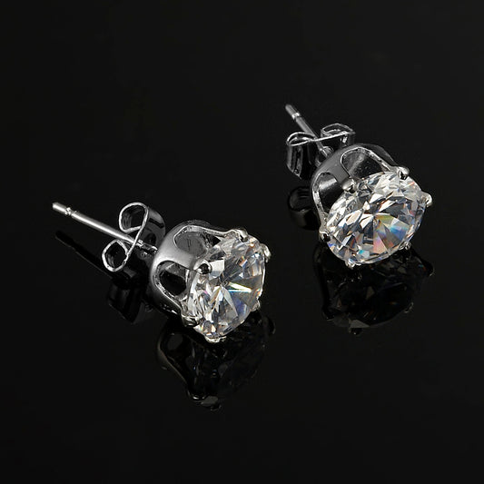 925 Sterling Silver Plated & Simulated Diamond Stud Earring - USA Made