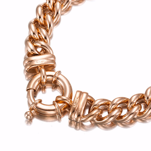 18ct Heavy Rose Gold Plated 10mm Belcher Chain Bracelet with a Pink Filigree Locket - USA Made