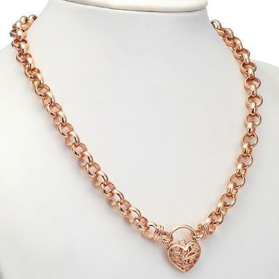 Schwere, rosévergoldete Belcher-Kette mit filigranem Medaillon, 18 Karat, hergestellt in den USA