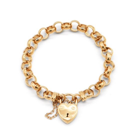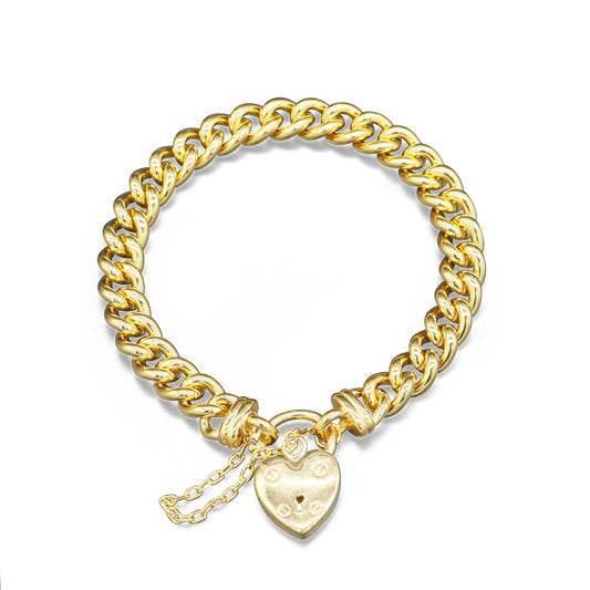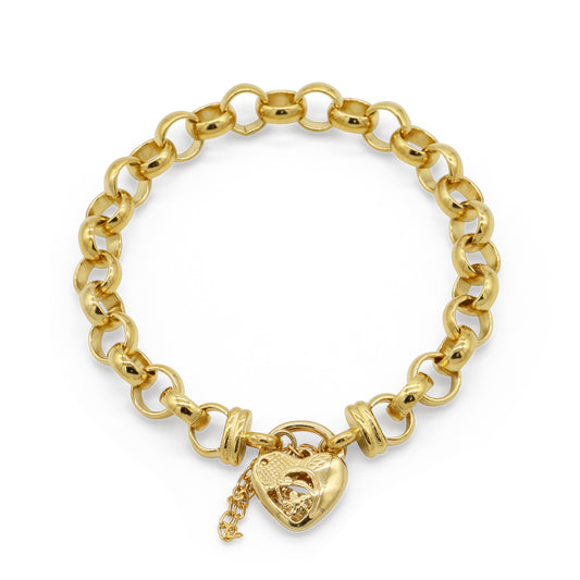 18ct Heavy Yellow Gold Plated 10mm Belcher Chain Bracelet with a Plain Heart Locket - USA Made