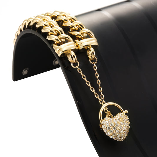 18ct Heavy Yellow Gold Plated 12mm Euro Curb Chain Bracelet Featuring a Simulated Diamond Locket - USA Made