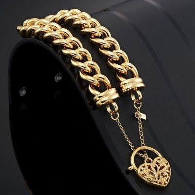 18ct Heavy Yellow Gold Plated 12mm Euro Curb Chain Bracelet with a Filigree Locket - USA Made