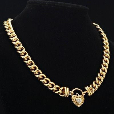 18ct Heavy Yellow Gold Plated Euro Chain Necklace with a Filigree Locket Featuring a Simulated Diamond - USA Made