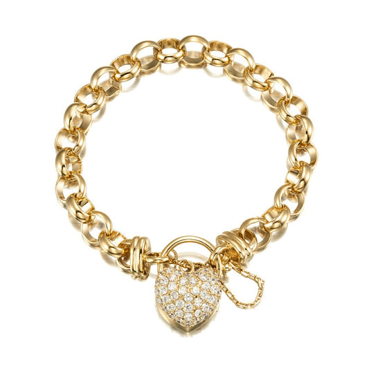 18ct Heavy Yellow Gold Plated Euro Chain Bracelet with a Vegas Heart Locket - USA Made