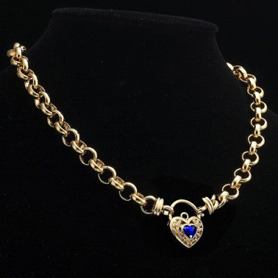 18ct Heavy Yellow Gold Plated 10mm Belcher Chain Necklace with a Dark Blue Filigree Locket