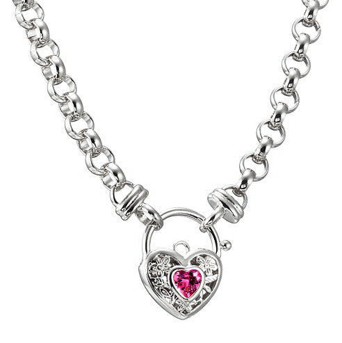 925 Sterling Silver Plated 6mm Belcher Chain Necklace with a Pink Filigree Locket - USA Made