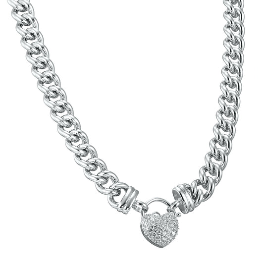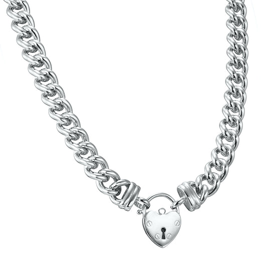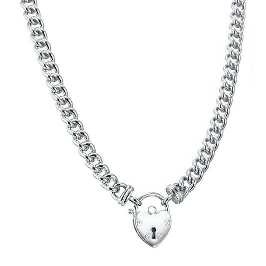 925 Sterling Silver Plated 6mm Belcher Chain Necklace with a Vegas Heart Locket - USA Made