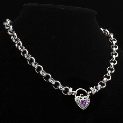 925 Sterling Silver Plated 10mm Belcher Chain Necklace with a Purple Filigree Locket - USA Made
