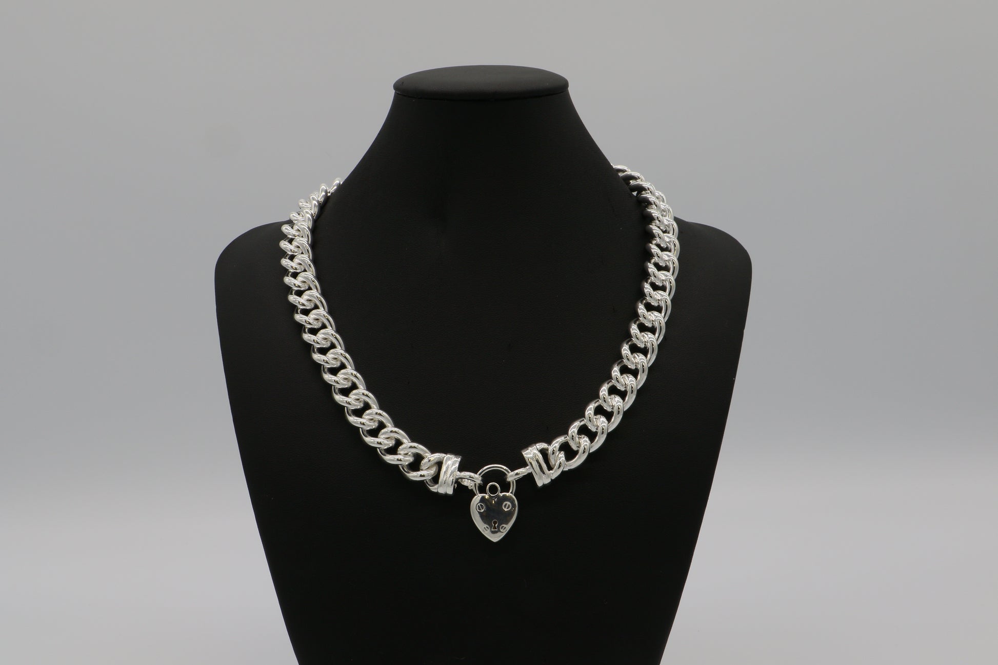 925 Sterling Silver Plated 12mm Euro Chain Necklace with a Small Plain Heart Locket - USA Made